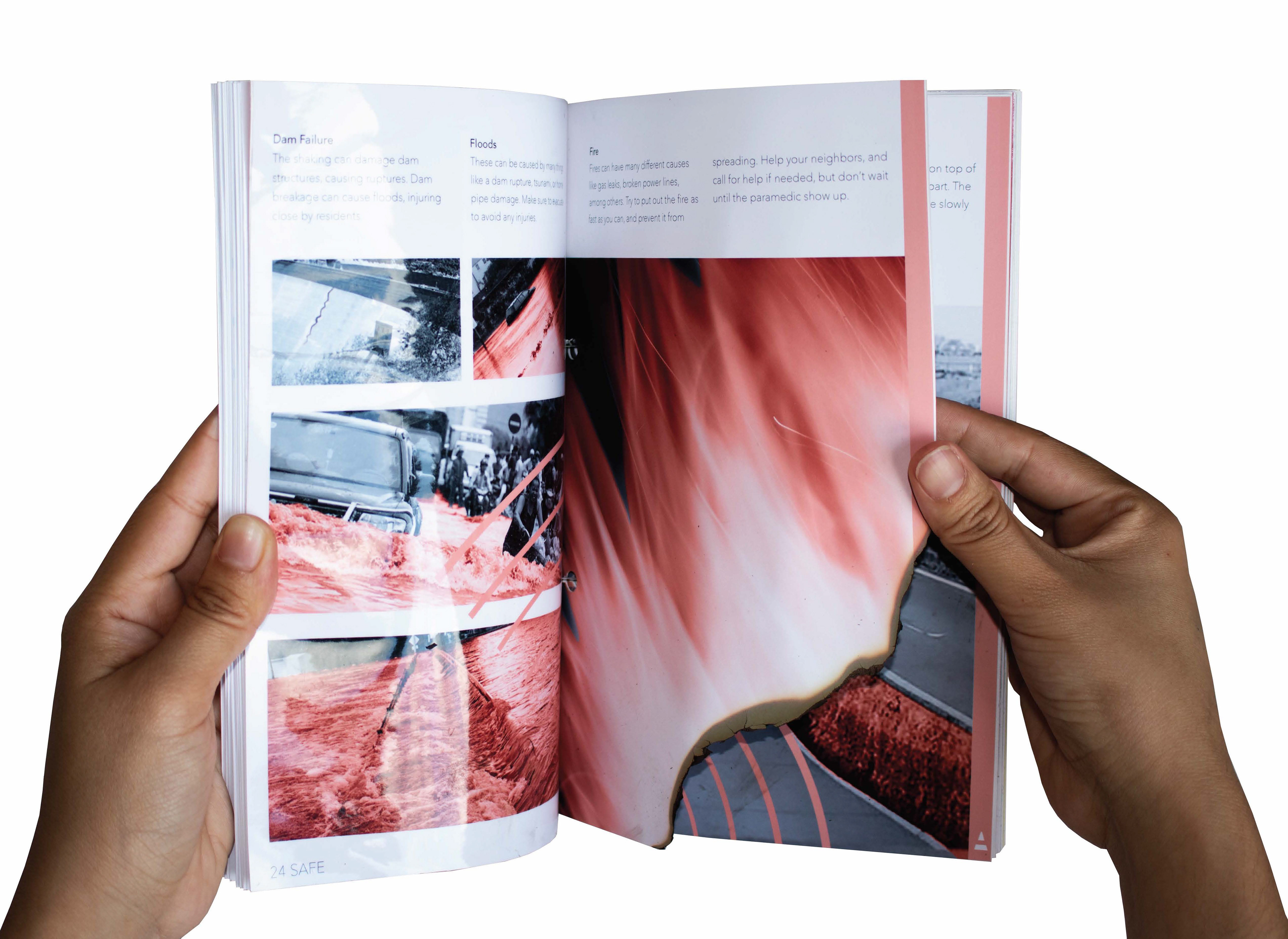 The handbook includes die-cuts and textures to connect the situation to the information.